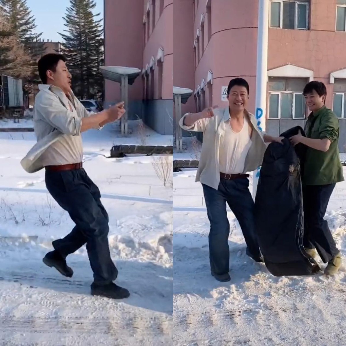 3月7日,于震在某短视频社交平台上分享了一段内容。视频中他仅穿一件背心加薄衬衫就在雪地里狂奔,就连他人递来的羽绒服都顾不上穿,还跟着音乐左右摇摆,整个人十分投入。