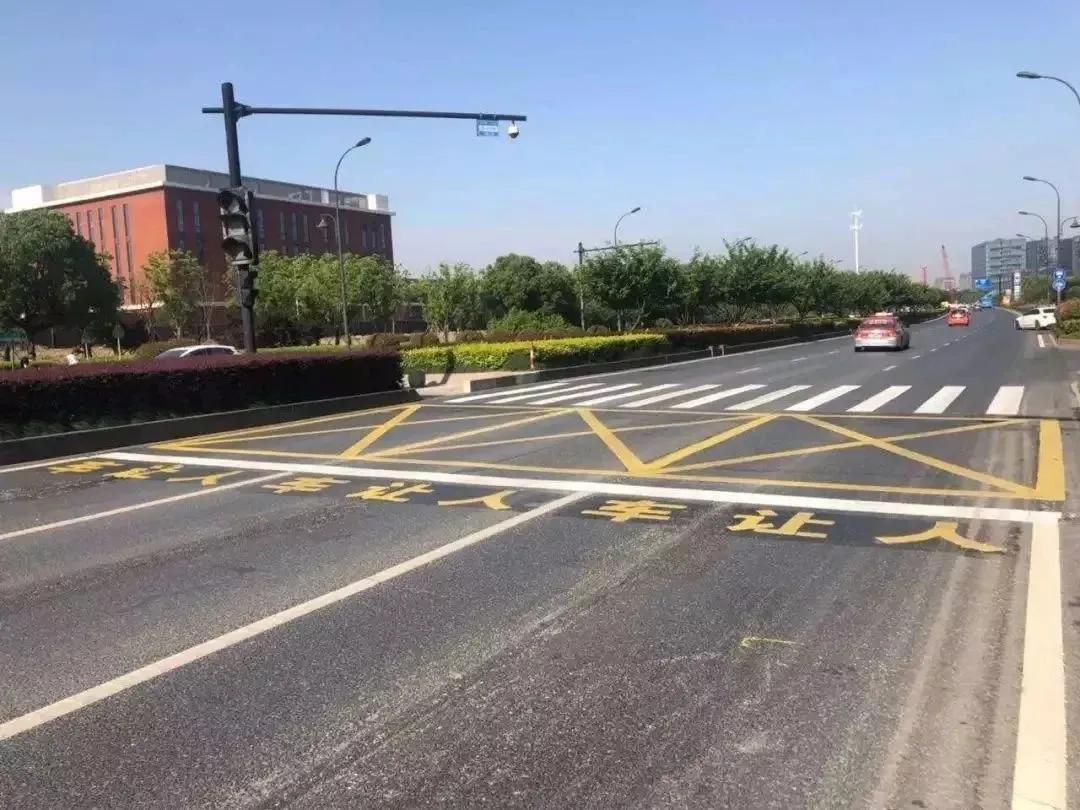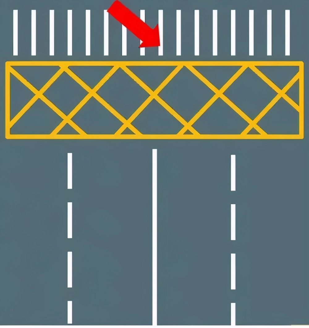 黄色网格线区域,这是禁止停车的标线,黄色网格线大多数出现在某些单位门口或是交叉路口的地面上。