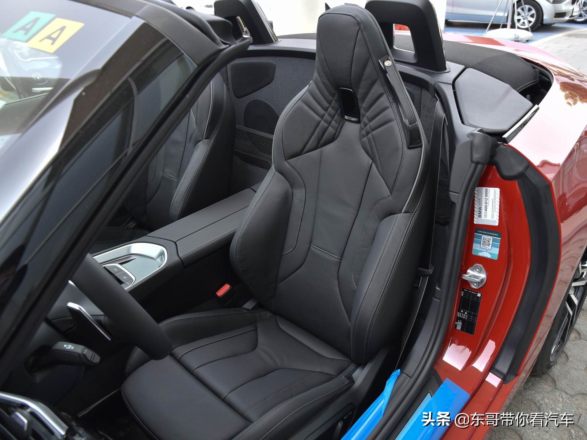 在座椅方面,2019款 sDrive 25i M运动套装标准配置了跑车风格的真皮座椅,不仅提供了良好的承托,而且也完全保障了乘车的舒适度,座椅均带有电调,并且主驾座椅也带有座椅记忆功能。座椅后方我们能看到有两个突起,那个实际上是起到一个防滚架的作用,因为这个车是软顶敞篷并没有承重结构所以在车里只要是系好安全带就不会不安全。而且这种敞篷车的车身是经过特殊加强的,即便没有BC柱也能保证车身的强度。