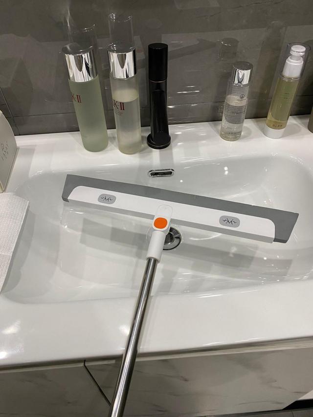 双刮条设计,硅胶刮条恰好遮住了底下的海绵刮条,看起来更美观精致一些。洗完澡用它来刮净卫生间的水,海绵头吸水性强不留痕迹。只需这一把佳帮手魔法扫把,一举好几的。