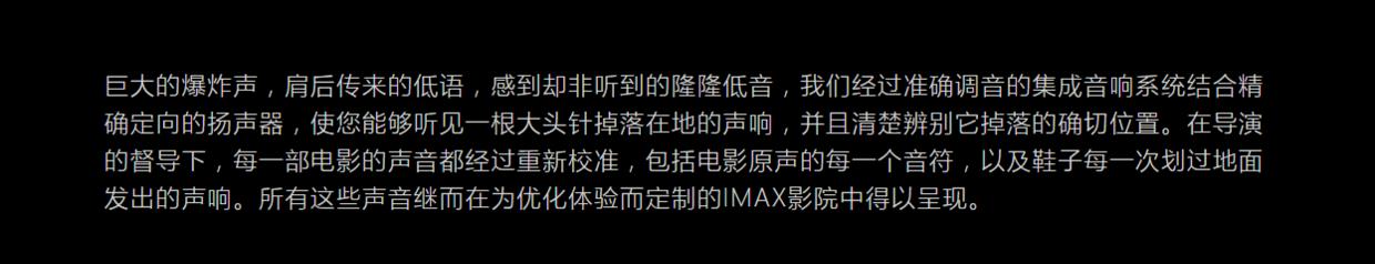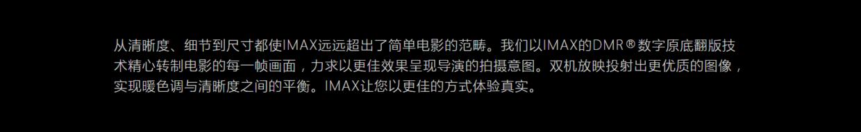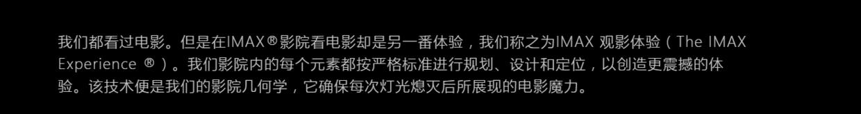 概要:IMAX是一整套的电影放映解决方案,更是一套顶级的观影技术与体验标准,搭建了包括从电影的摄制、翻版到影院的银幕大小比例、投影和音效,再到放映厅的形状、座椅角度全方位的标准要求。