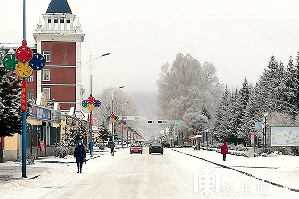 因雪量大,积雪粘稠,形成了美丽的雪挂景观,放眼望去群山间宛若银装素裹披新裘,蜿蜒的呼玛河水以雪为底、以红柳为饰,装扮的蹁跹艳丽,街道两旁的树梢间朵朵“梨花”绽放枝头,小镇与群山融为一体,宛若一幅山水画徐徐展现,美不胜收。