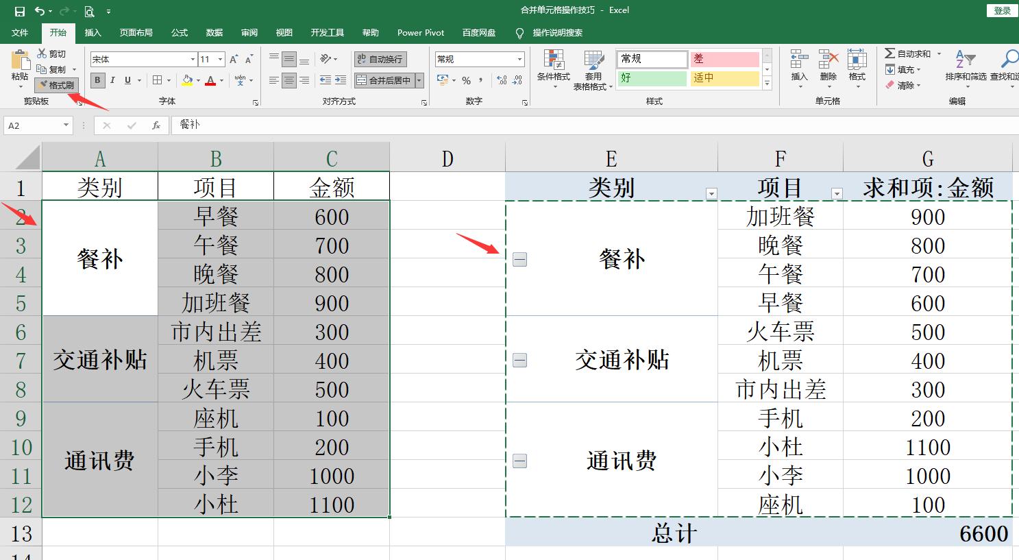 メ我们把原表格的顺序排列一下——直接用格式刷唰一下,完整转换,简单轻松。メ