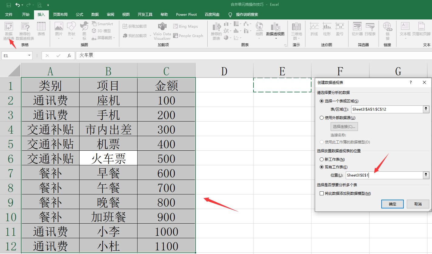 メ我们来试试,相同单元格合并,全选表格——插入——透视表。メ