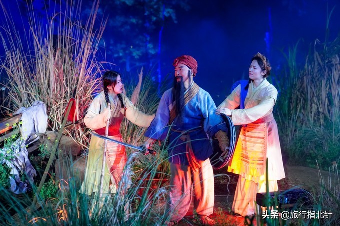 演出开始前,从双江街码头出发乘船前往月亮岛,一路看到建德多座跨江大桥,欣赏着建德的夜景风光,船上一老一少两个演员将对月亮岛五幕内容进行铺垫式的简约说唱。