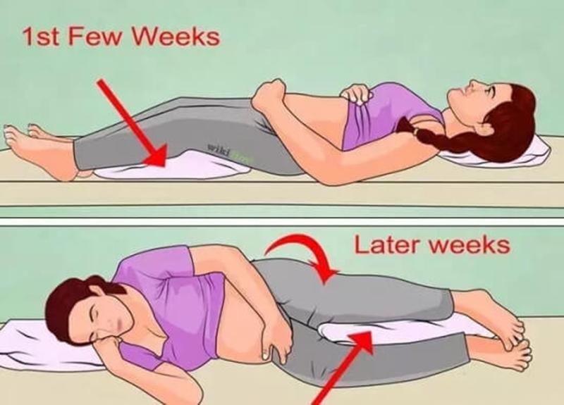 ③ 到了怀孕晚期,肚子基本都很大了,为了孕妈和胎儿的安全起见,尽量左右侧换着睡,就别再仰卧睡了。
