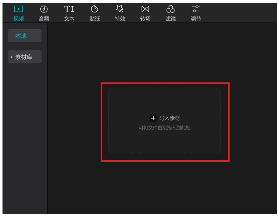 4、在剪映主界面,点击导入素材按钮,导入有水印的视频。