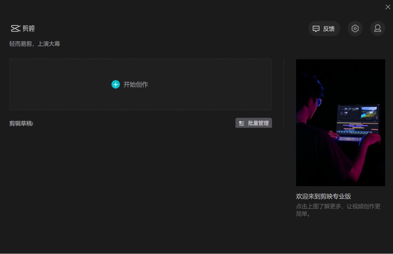 3、点击开始创作按钮,进入剪映主界面。
