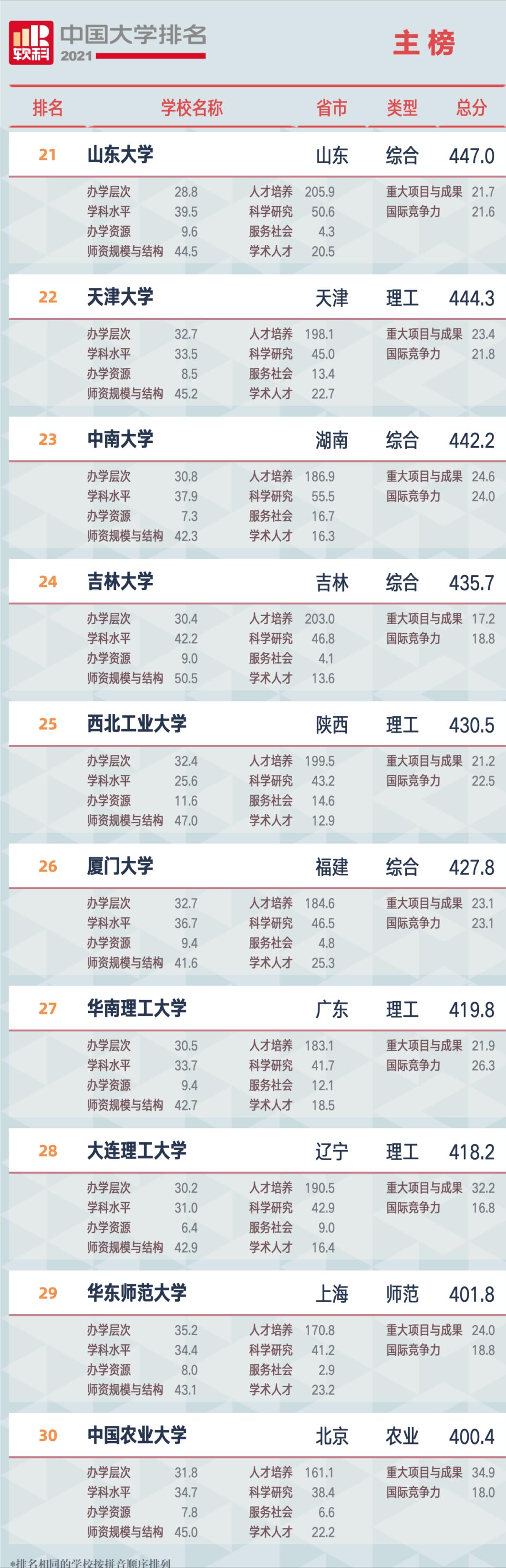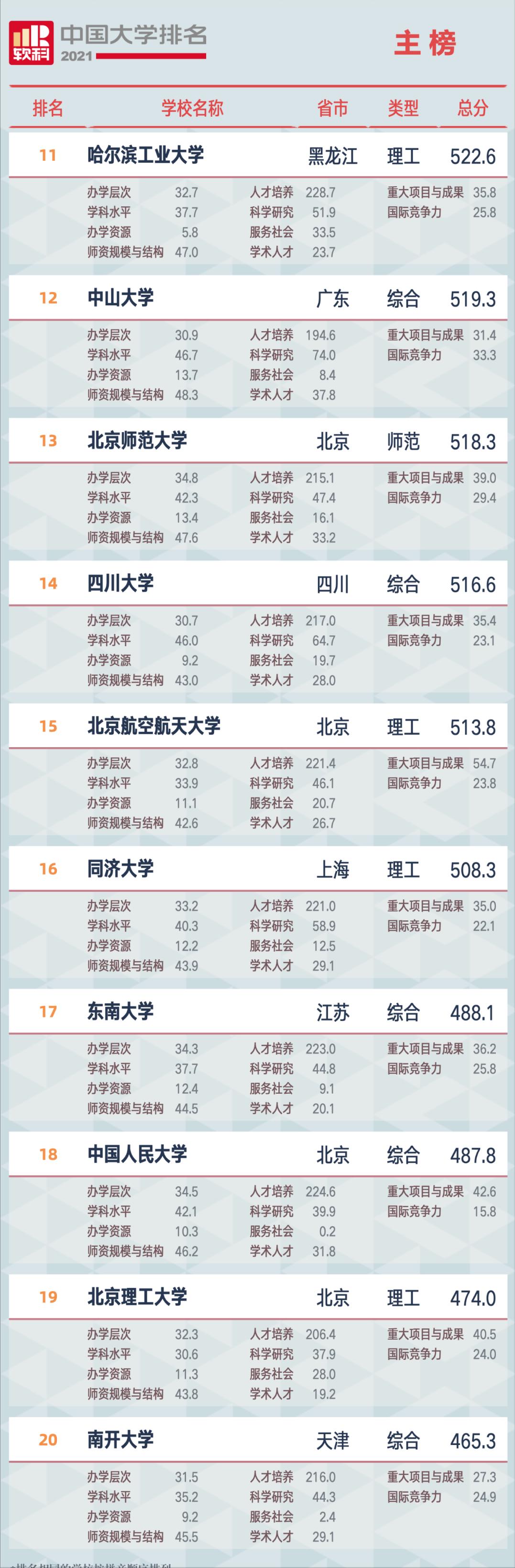 另外,大家常说的山川吉已经成了“川山吉”,四川大学第十四,山东大学第二十一,吉林大学第二十四。