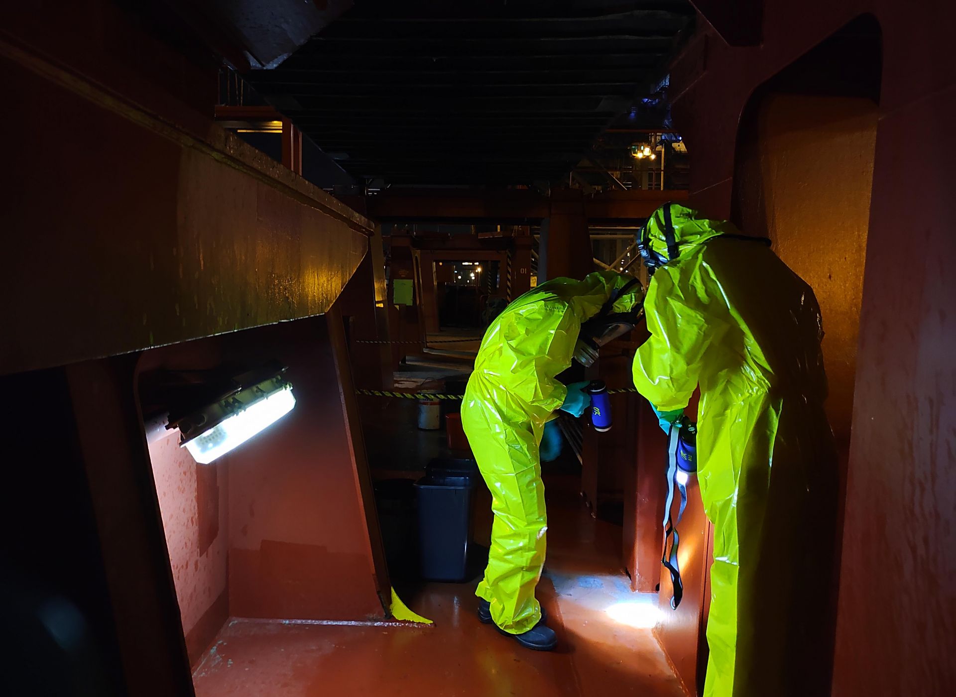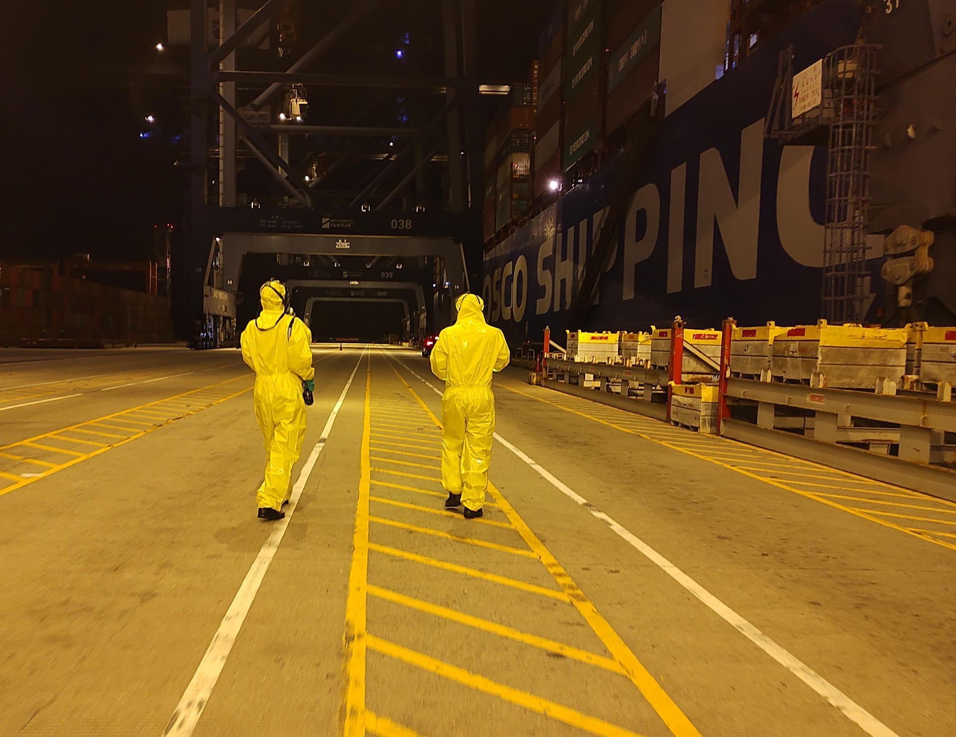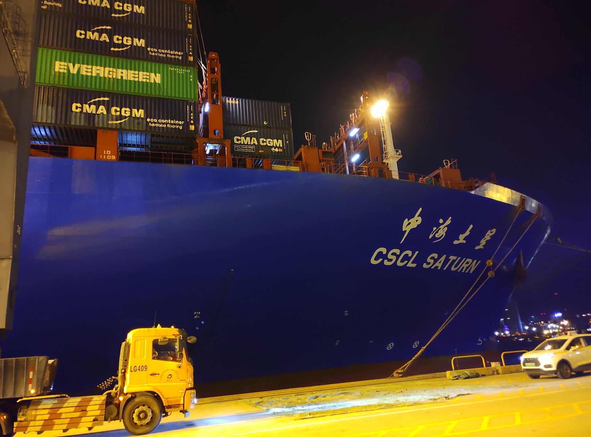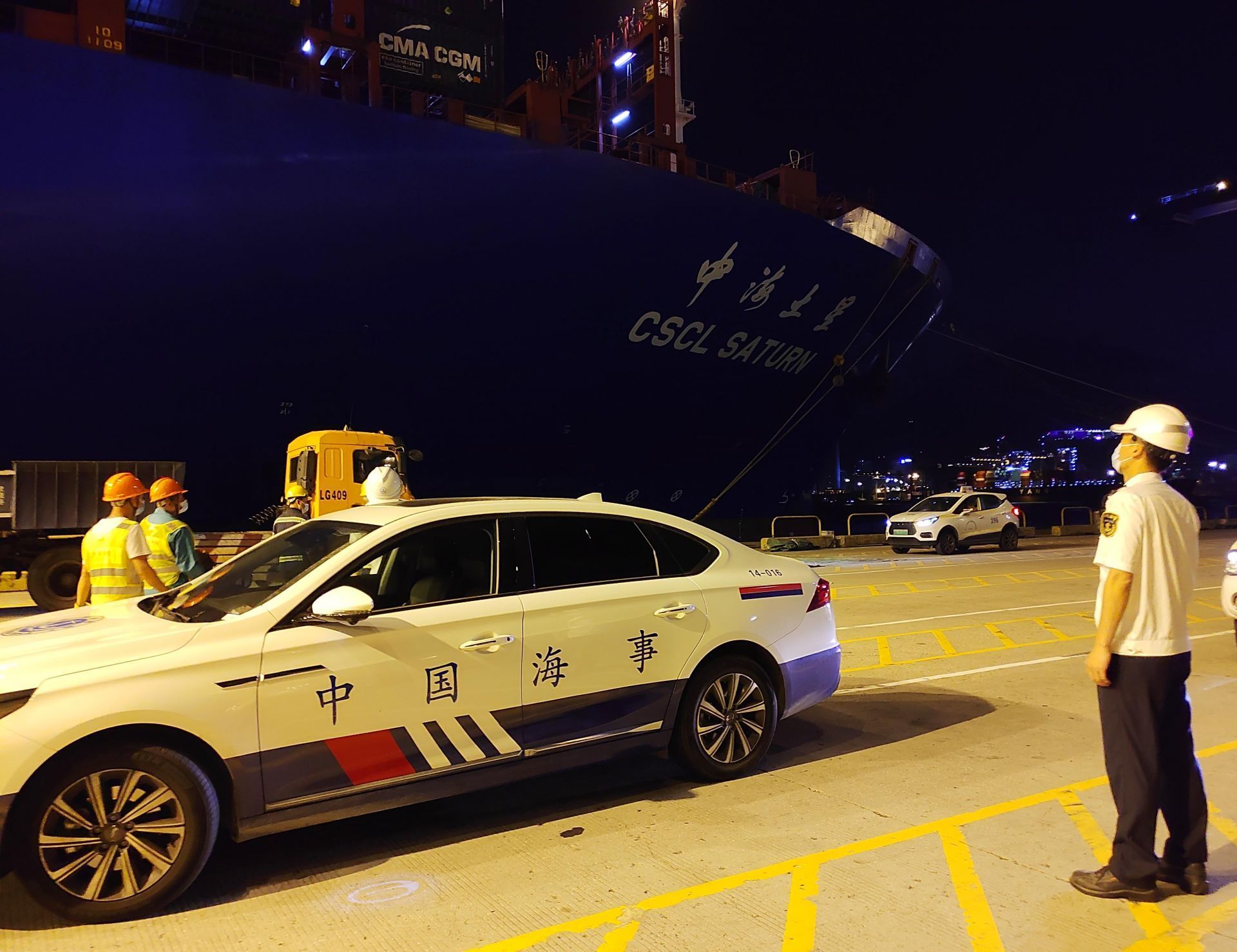 4月11日晚,盐田海事局接船舶代理报告,盐田港9号泊位“中海土星”(CSCL SATURN)轮有危险品集装箱发生渗漏,接警后,深圳盐田海事局立即按照相关应急预案和防疫工作指引开展紧急处置工作。