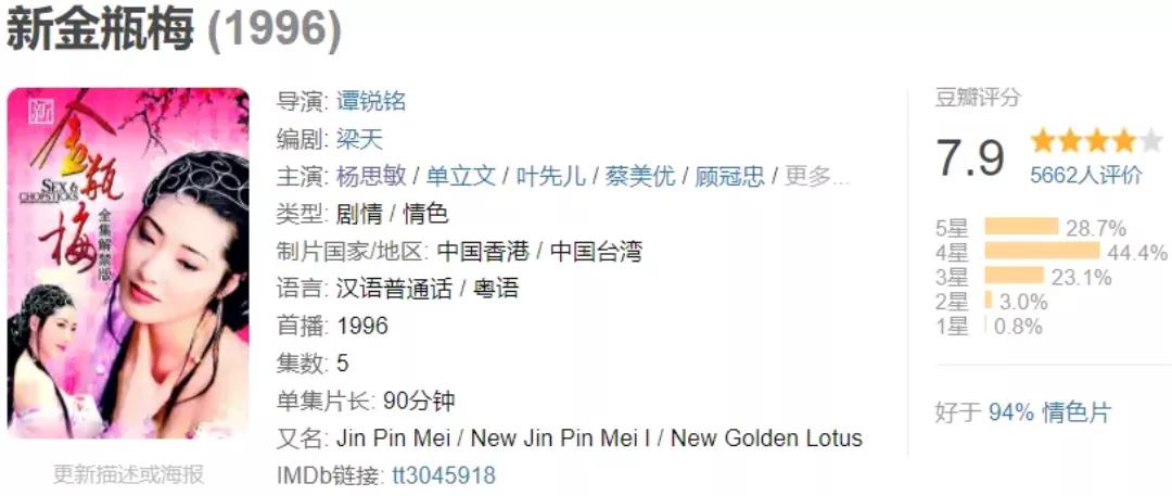 而当中属杨思敏版本的《新金瓶梅》的改编力度最大,情节和表演也最火辣。