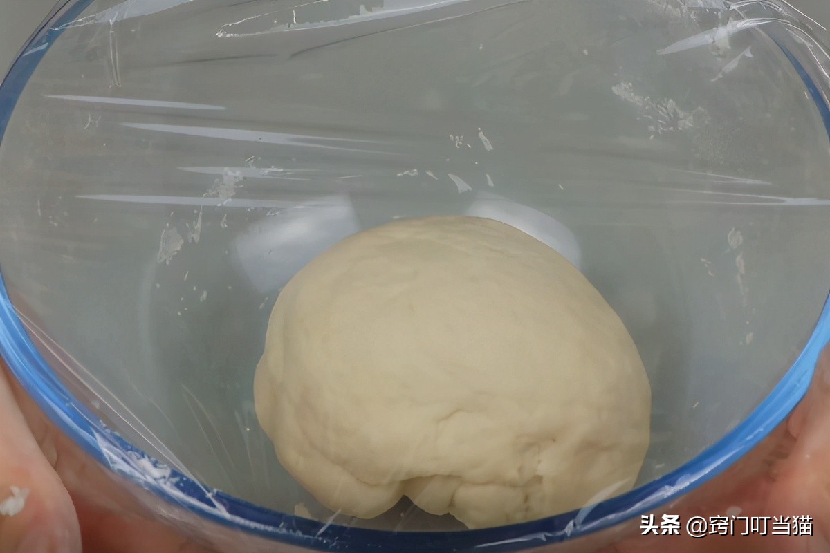 将面粉揉成光滑的面团后,将面团放进盆里面盖好保鲜膜醒面10分钟左右