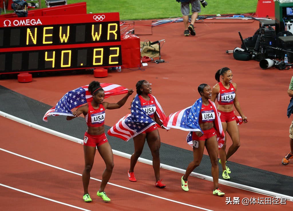 4×100米接力:伦敦奥运会诞生两大接力世界纪录,一个是博尔特率领的牙买加男队跑出的36秒84,一个是由杰特尔、菲利克斯领衔的美国女队创造的40秒82,完胜弗雷泽、坎贝尔在内的牙买加女队(41秒41)。