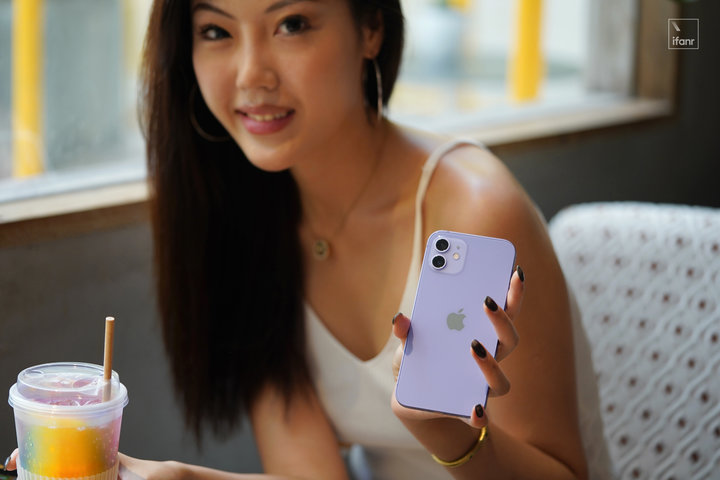 和前代 iPhone 11 柔情似水的淡紫色相比,iPhone 12 系列的紫色饱和度稍高一些,更具活泼、青春的气质。