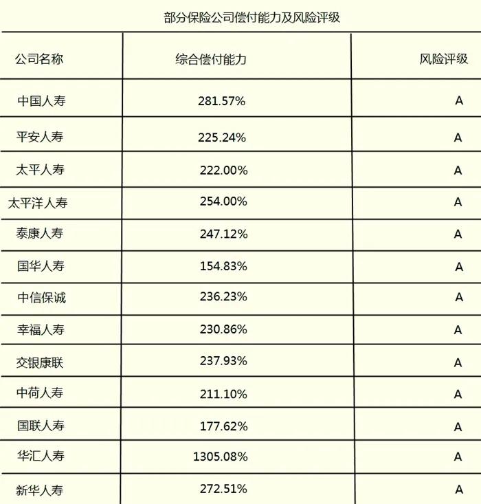 一般偿付能力充足率越高,保险公司的风险就越小。但偿付能力的大小并不完全代表一家保险公司的好坏,在这个排名中很多名不见经传的“小”公司也上榜了。所以说并不一定大公司的偿付能力就高,中小保险公司也并不一定赔不起。