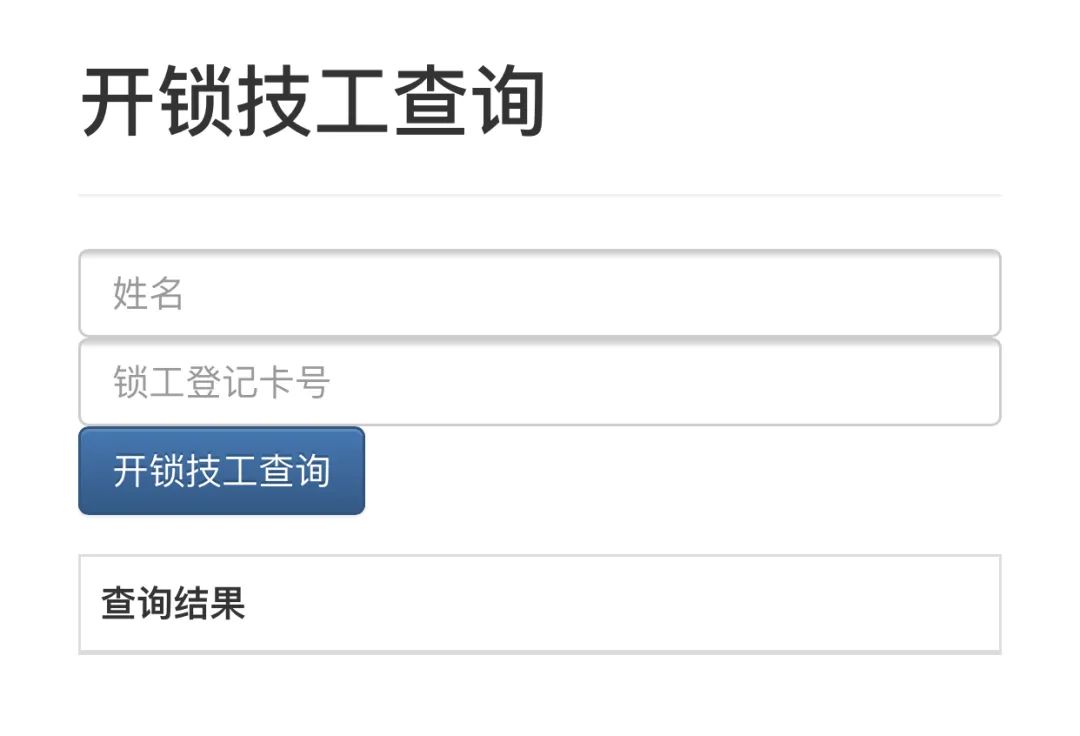输入开锁技工姓名和锁工登记卡号