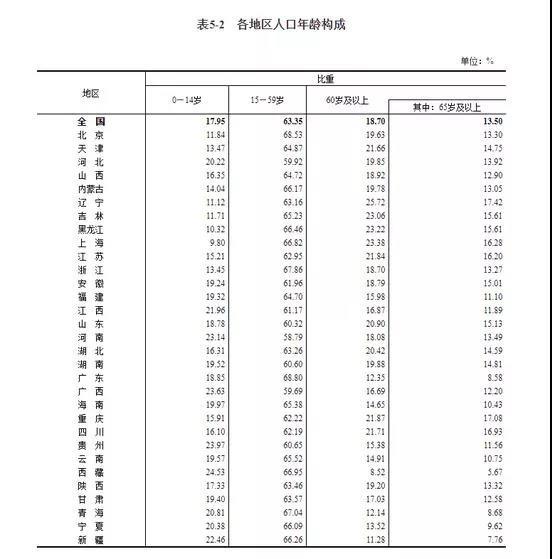 除西藏外,其他30个省份65岁及以上老年人口比重均超过7%,其中,12个省份65岁及以上老年人口比重超过14%。其中,上海65岁及以上老年人口比重为16.28%。