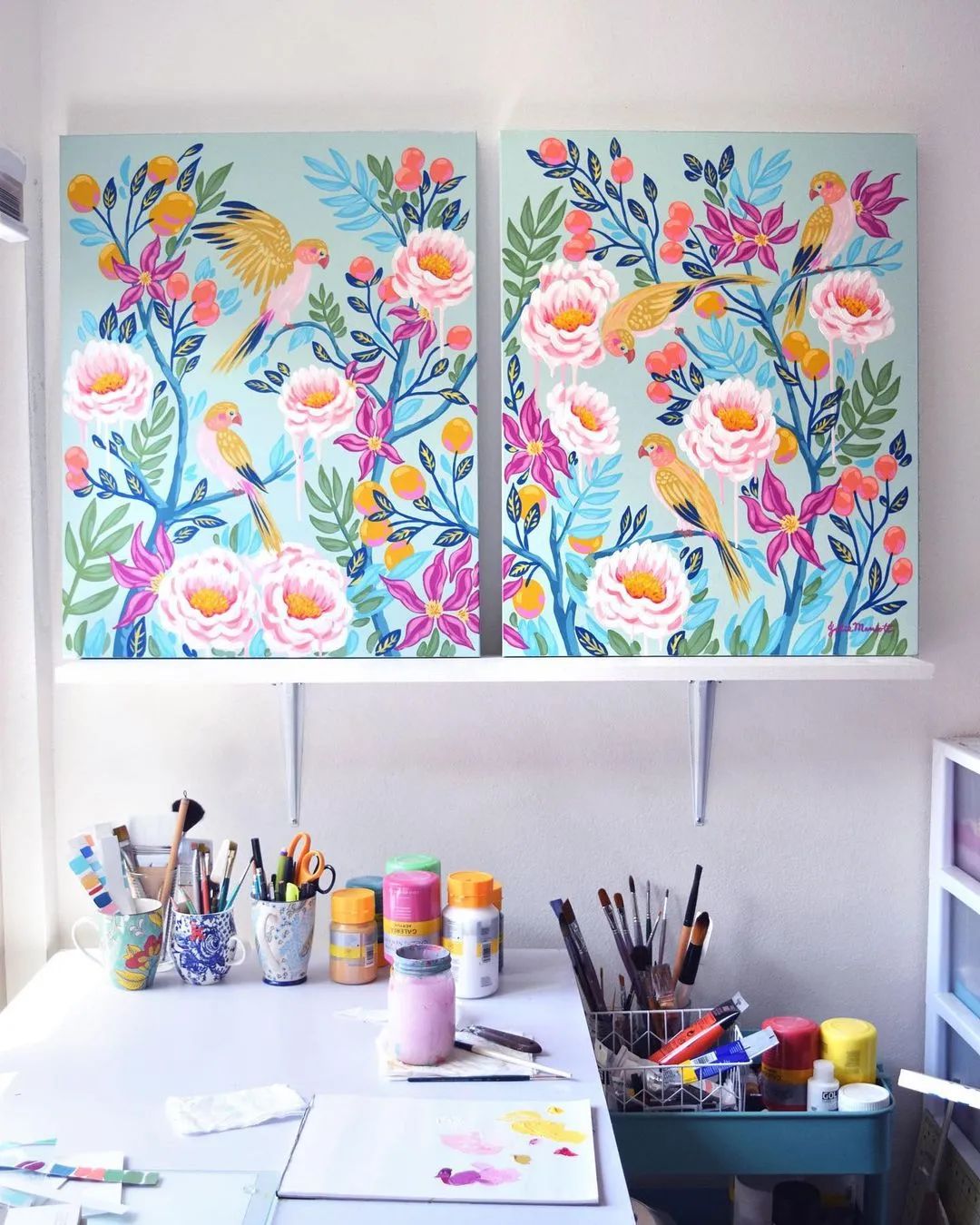 小贴士:以画布或者木板为主,因为颜料覆盖在画布或木板上,颜色不易脱落,并具有保存持久效果。