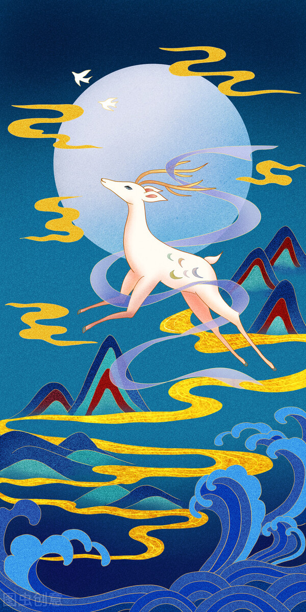 取材于敦煌莫高窟壁画《九色鹿经图》。