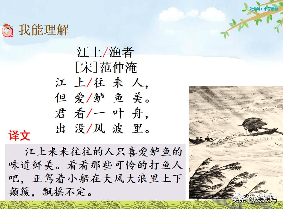 这是一首语言朴实、形象生动、对比强烈、耐人寻味的小诗,反映了渔民捕鱼的艰辛,唤起人们对渔民疾苦的注意。