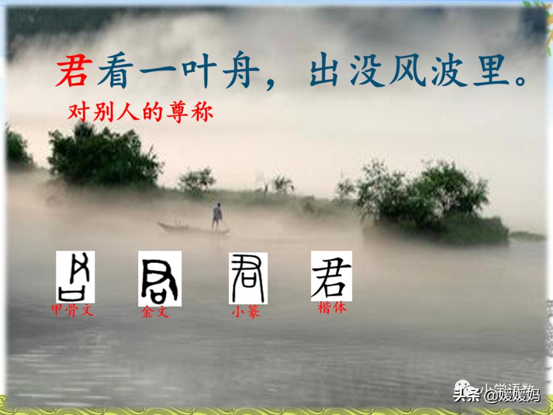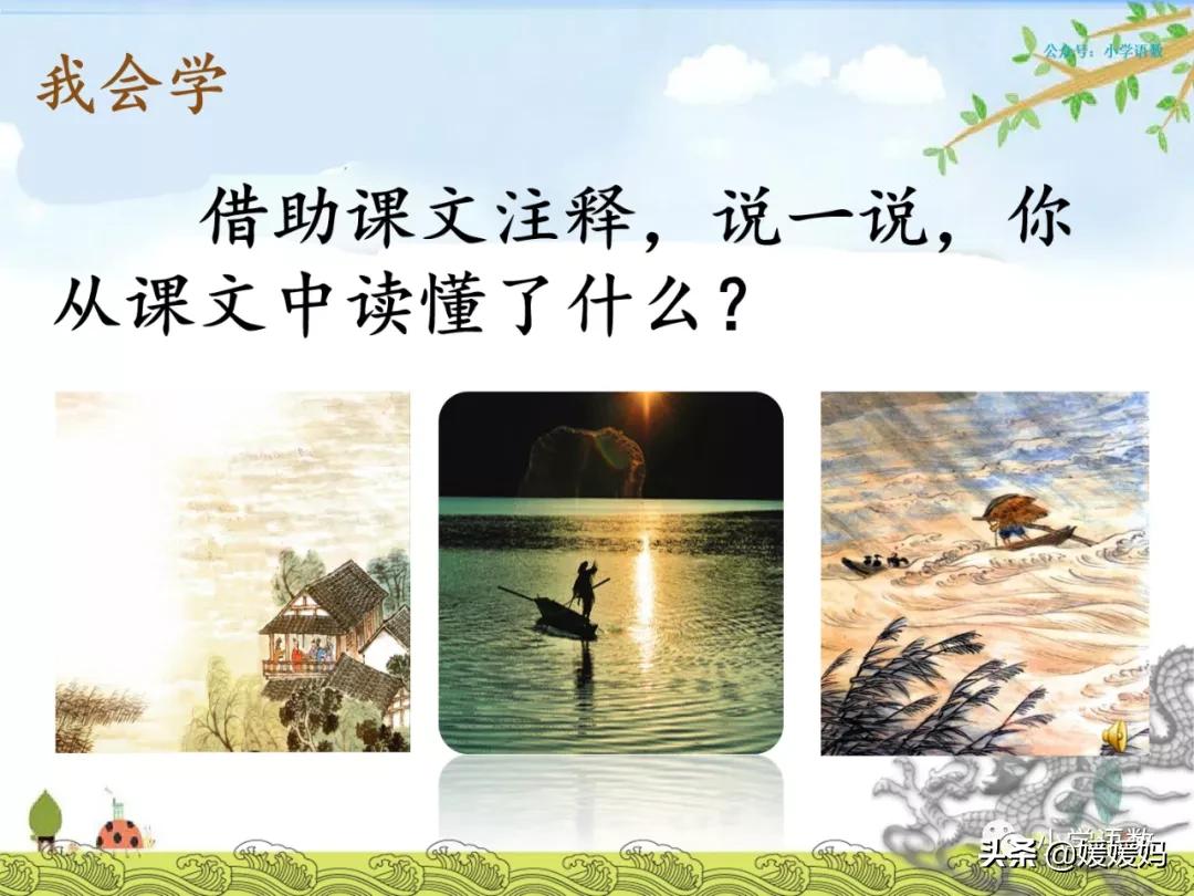 (6)一叶舟:像漂浮在水上的一片树叶似的小船。