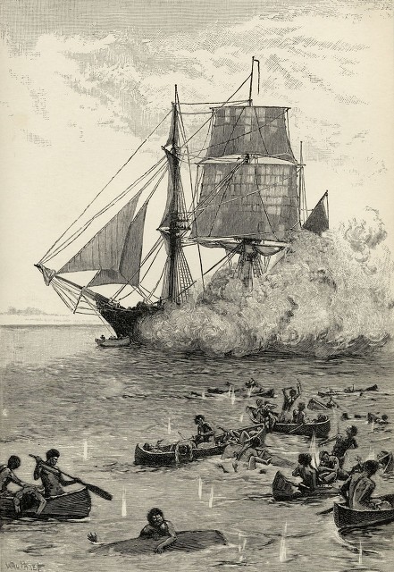 有一天鲁滨逊看到许多野人乘着木船上了岸,他们拖出了两个倒霉的同伴,杀了一个,另一个则挣扎着逃跑,鲁滨逊决定就下这个野人,于是开枪打死的追赶他的两个野人,救下的野人十分信任他,鲁滨逊给他取了个名字,叫星期五他们很快成为了很好的朋友。