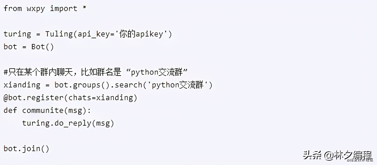 1.获取微信的使用权,即python脚本能控制微信收发信息。 2.python脚本收到聊天信息后,要对该信息进行处理,返回机器人的回应信息。