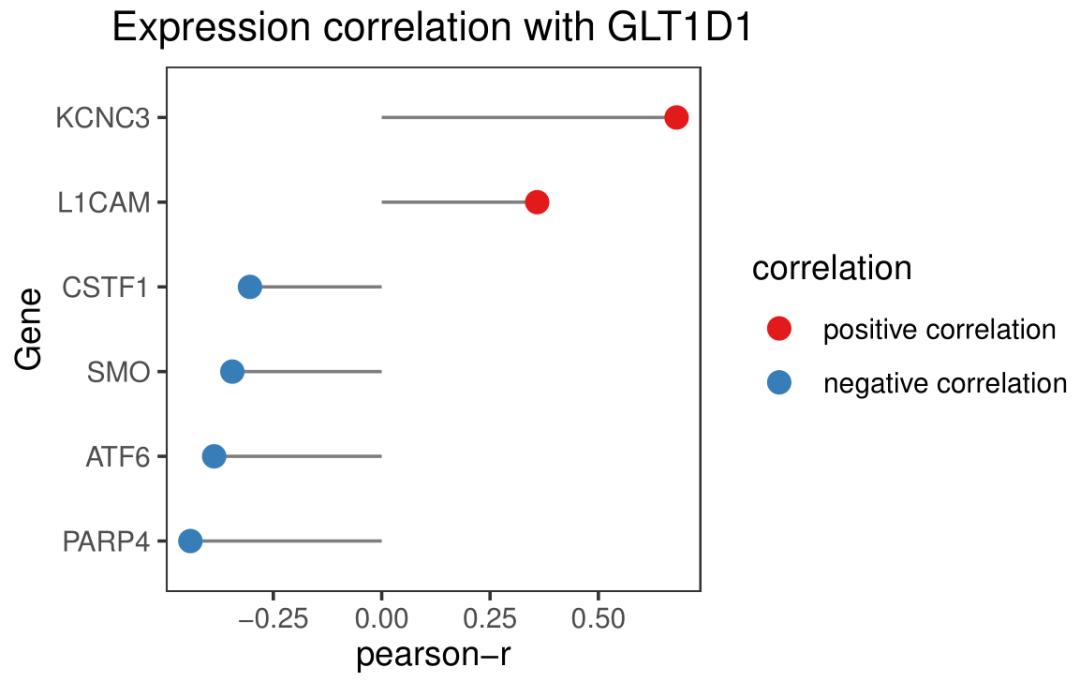 ggtitle(&34;expression correlation with GLT1D1&34;)+