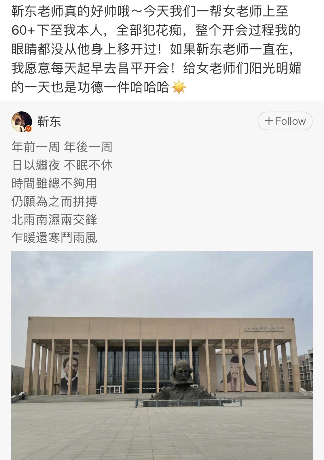 二是作为史上最老新生,毕业于中央戏剧学院的他,回到了自己的母校,成为了戏考老师。