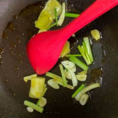 6、锅里放油烧热爆香葱姜蒜