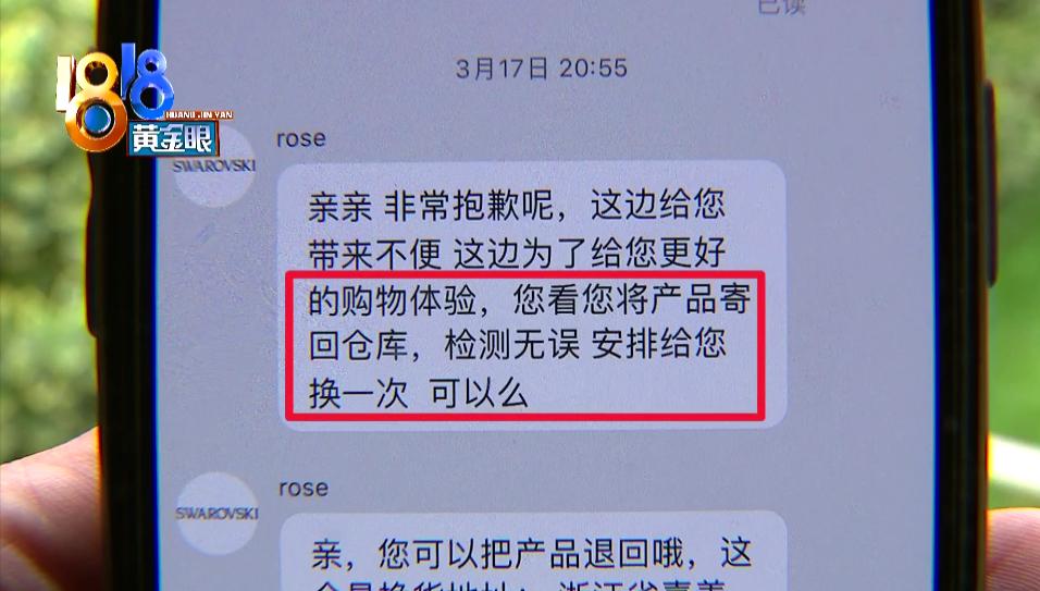 门店工作人员表示,因为是网上购买,他们无权处理。施华洛世奇官方旗舰店没有留电话,只有在线客服,之前的沟通中,在线客服曾经说过,让小周拨打品牌热线咨询。