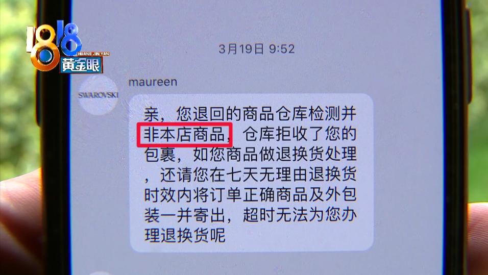 施华洛世奇客服中心 工作人员:“您的订单我这里是查询不到的,就是说这个店铺确实是我们授权的,产品也是可以保障正品,但是如果说是发出的产品,与您购买的不一样的话呢,我这边是没有办法给您去换的,您是要联系 (店铺)客服给您处理。”