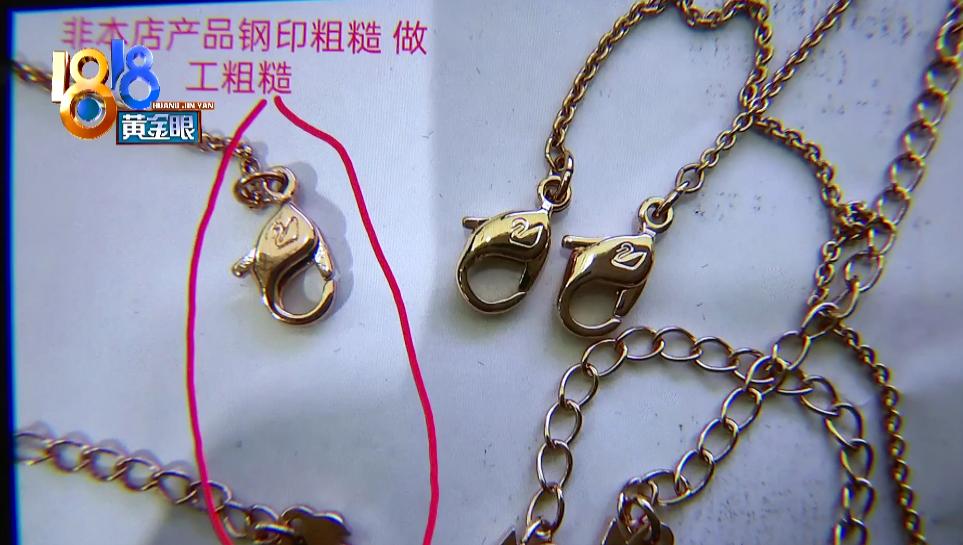 门店工作人员表示项链与正品多处不符