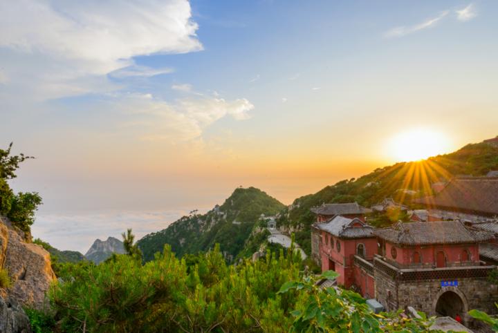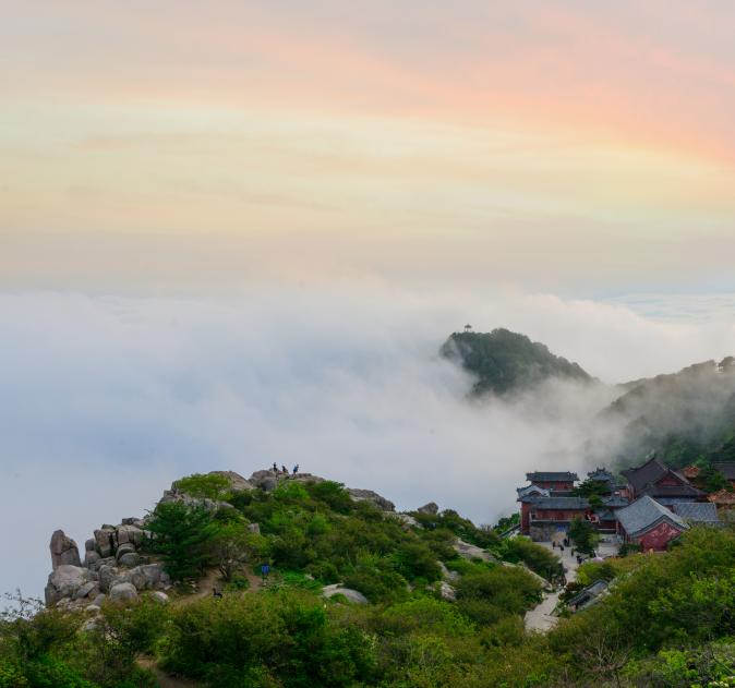 泰山四大奇观:泰山日出、云海玉盘、晚霞夕照、黄河金带,也有一说:旭日东升、晚霞夕照、泰山佛光、云海玉盘……泰山日出是壮观而动人心弦的,是岱顶奇观之一,也是“天下第一山”——泰山的重要标志。许多游客夜爬泰山,都是为一睹泰山日出奇观,而能看到泰山日出的人,无疑是幸运的。