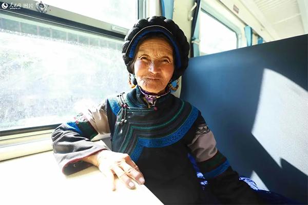 彝族老阿妈乘坐“慢火车”走访亲戚。李 锴 摄