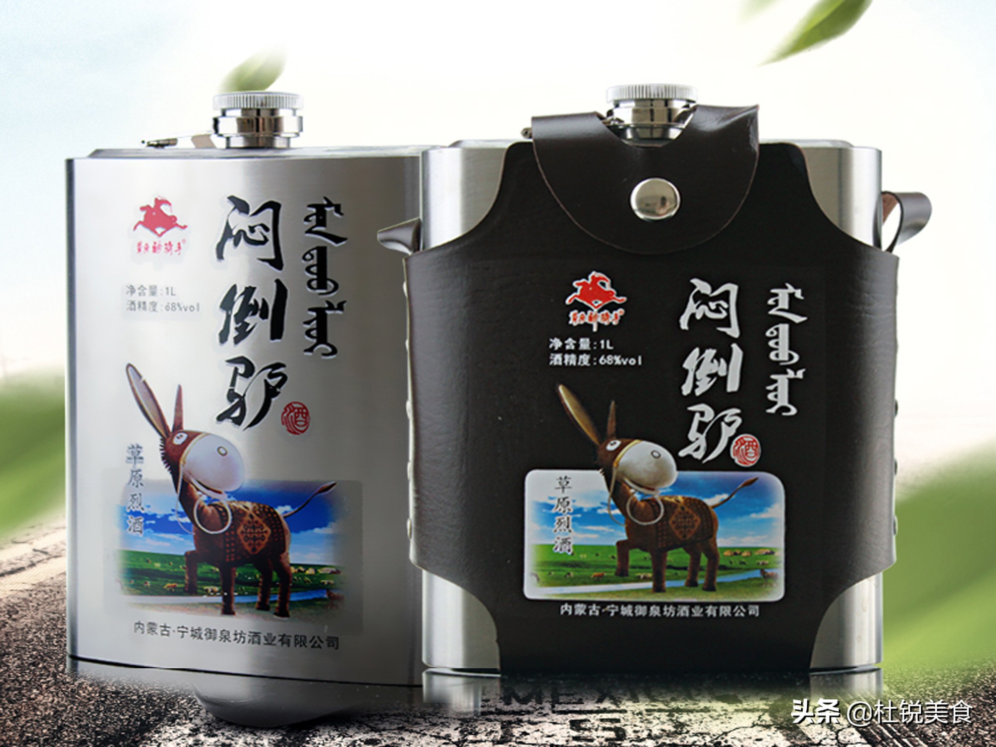 闷倒驴酒,酒精度68度,清香型白酒。到过内蒙旅游的朋友们大多都见识过内蒙的闷倒驴酒,是那种不锈钢罐包装,方便人们外出放牧时饮用。这也足以看出内蒙人喝酒的豪迈,估计几块牛肉干,一大壶闷倒驴,就是一天的口粮吧。