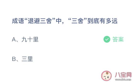 成语退避三舍意思是主动退让,含贬义,出自《左传·僖公二十三年》,在古时行军计程以三十里为一舍,那么三舍到底有多远呢?下面带来蚂蚁庄园3月29日答案介绍。