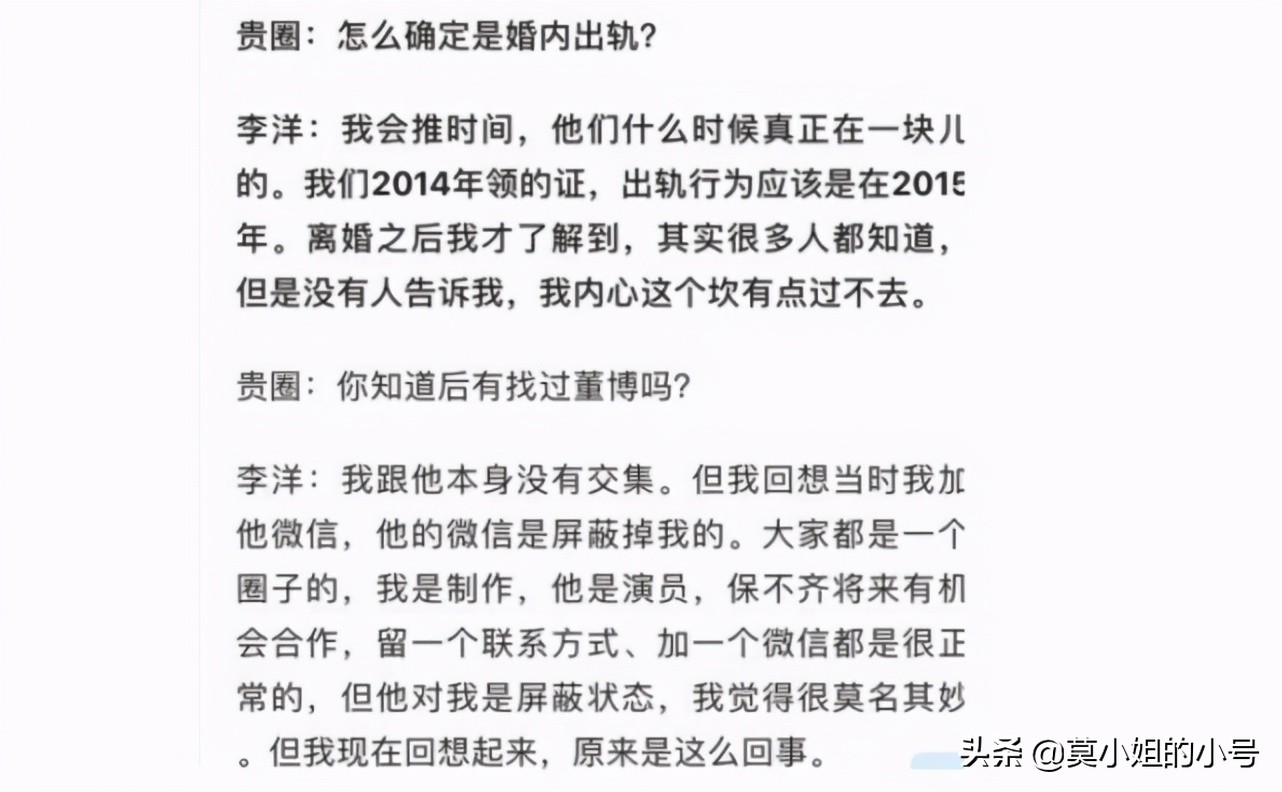 然后董博的前妻马琦雅也出来证实,马琦雅发现两人关系后就询问了董博,董博很快就承认了,并以三观合为理由。