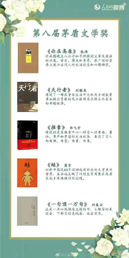 用五字作书名的有7部7个作家,只缺一、四、七、八、十届。列第四。五个字作书名也是高手啊!