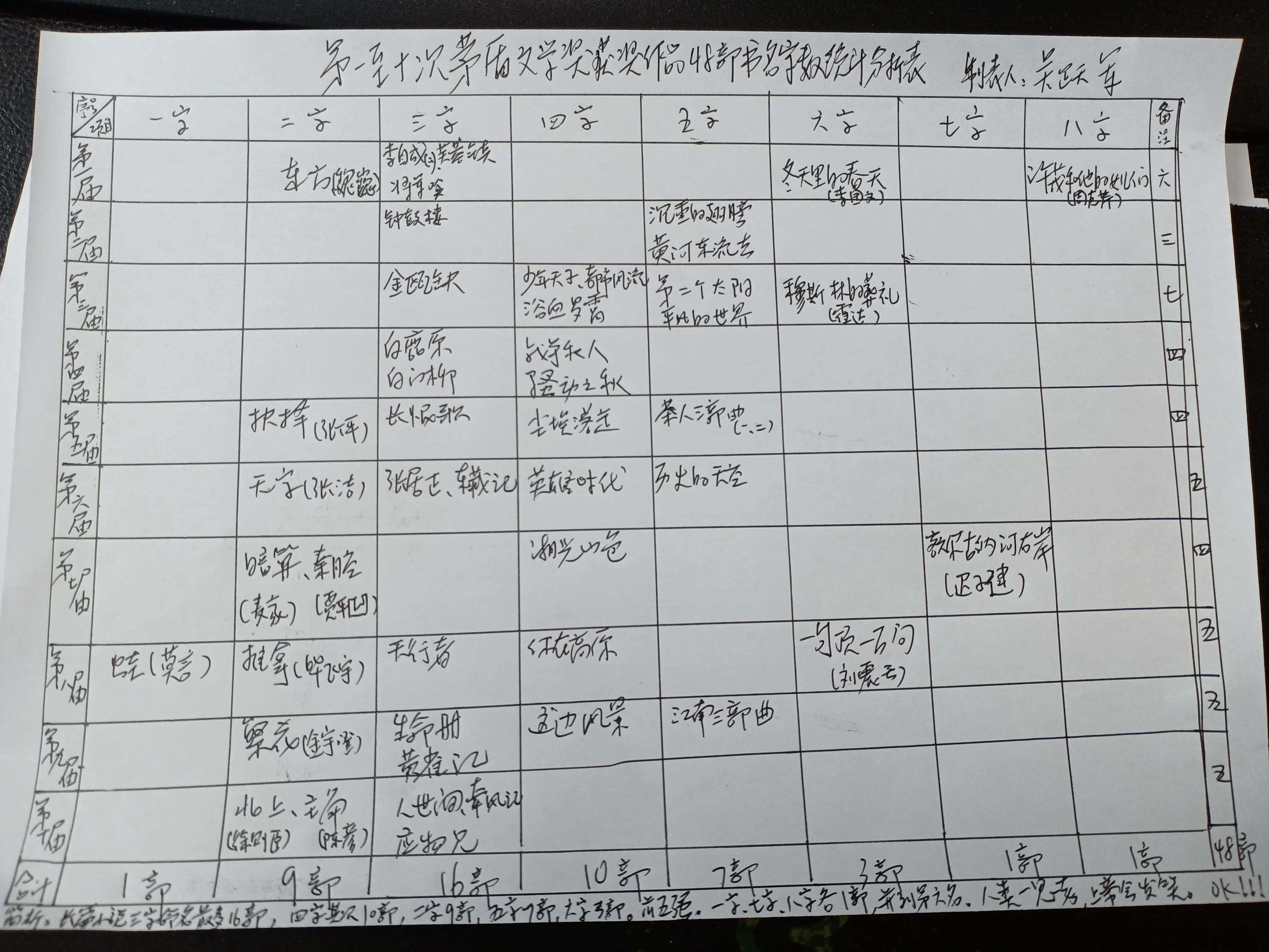 第一至十次茅盾文学奖颁发了十届,有48个作家48部作品获奖。获奖作家创作作品时用的书名字数谁最多?谁最少?谁的书名字数获得前五强?