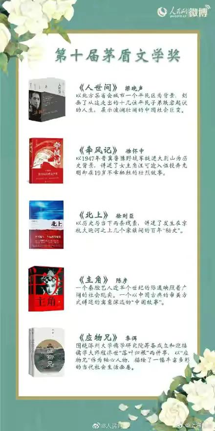 用四字作书名的有10部10个作家,只缺第一、二、十届。列亚军。四个字也不错啊。