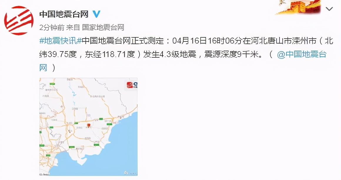 所以如今唐山已经是“焕然一新”,同时相对来说,地震也少了很多了。不过在北京时间2021年4月16日,河北唐山市滦州市(北纬39.75度,东经118.71度)发生4.3级地震,震源深度9千米,让大家又对唐山出现地震感到担心。本次地震的波及范围十分的广泛,北京、天津、秦皇岛、承德等地多地区域均有震感,所以虽然是4.3级地震,但是地震的波及范围还是较大。