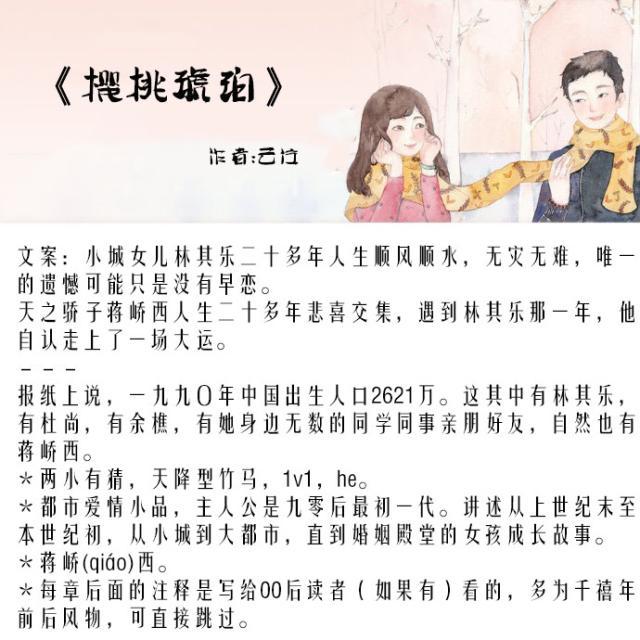 书评:高中同桌,高中起住一个胡同,小时候睡过一张床爷爷开玩笑订过娃娃亲。本来女主家境不好,从郊区镇里考来,自卑敏。男主住胡同里最大的房子,有要好的朋友,而且数学极好,竞赛保送清华。后来男主父亲被当替罪羊,隐居南方,家道中落,男主在大学也做着自己热爱的事业,女主也变得热情自信。在一起之后,面对诱惑,坑挖陷阱,都走过来了。真的看哭。
