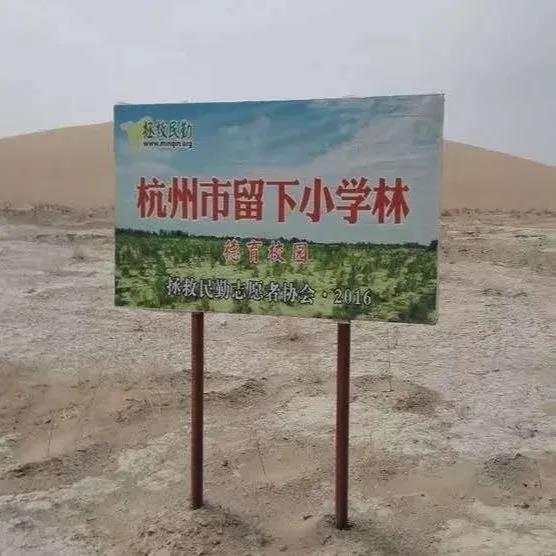2016年3月,杭州市留下小学参与“拯救民勤·绿色传递”活动,在师生中募得善款26106元,捐种近37亩梭梭林,并被命名为“留下小学林”。自此,留下小学在民勤有了一座“公益校园”。