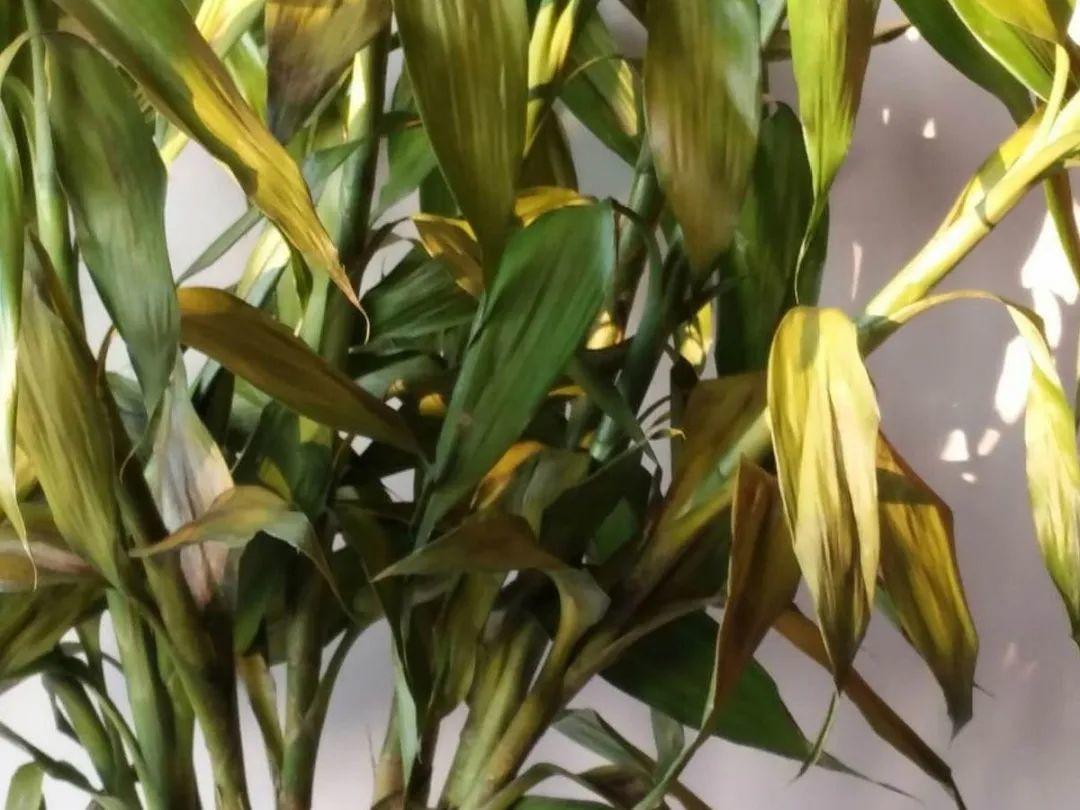 如果很久没有加水,富贵竹叶子变黄,杆子又皱又黄,那就是缺水了。
