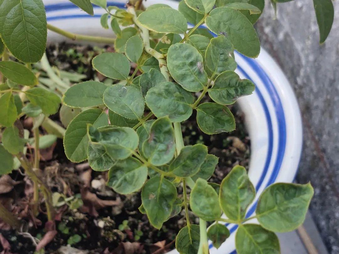 新买的带花月季,尤其是花市的小盆栽,可能是激素苗(大棚里上过营养的),到家后花开一半就没养分了,老叶先黄,严重的话会大面积黄叶。