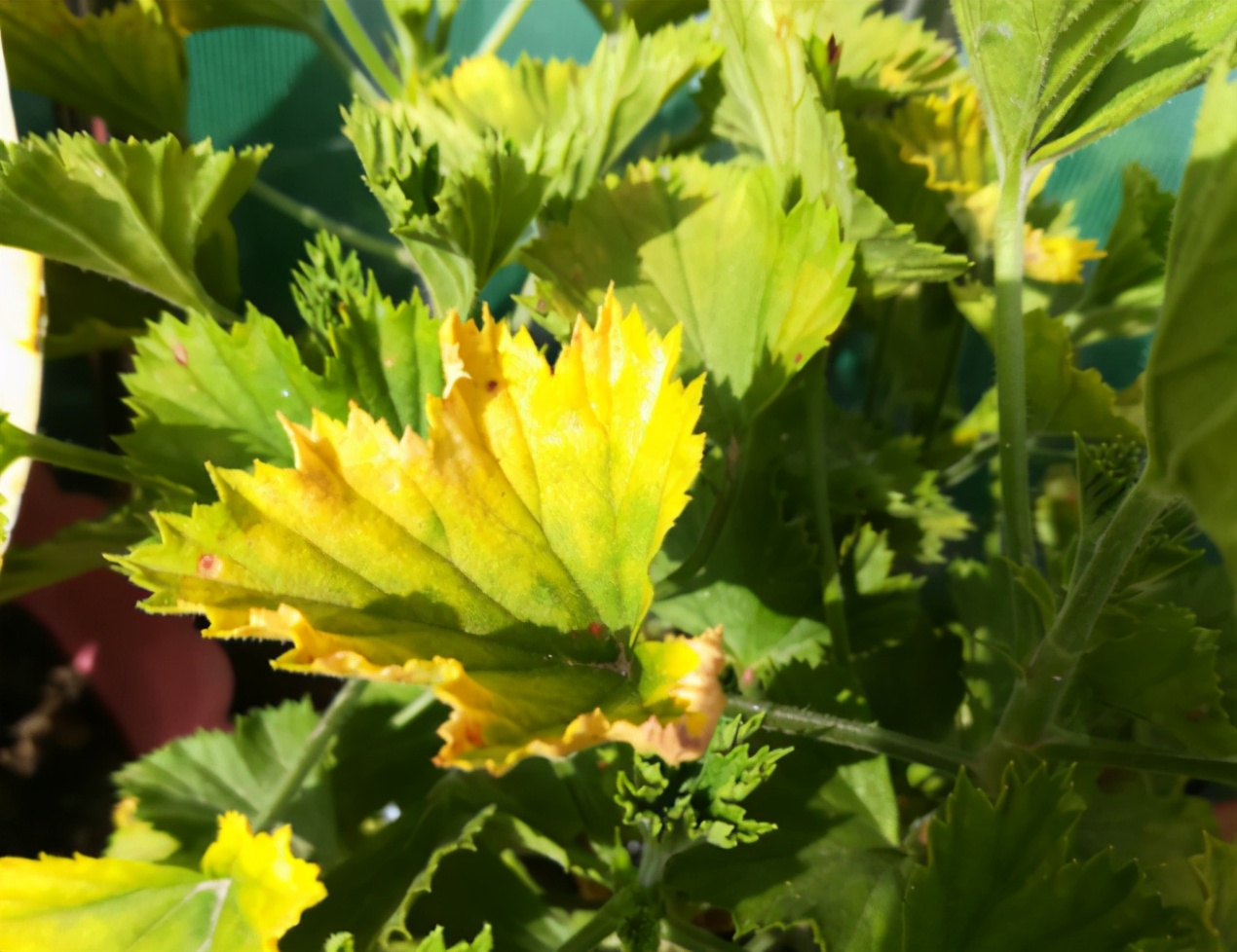 家里温度高、光照强的,天竺葵黄叶会比较严重,尤其是超过28度,要小心了。