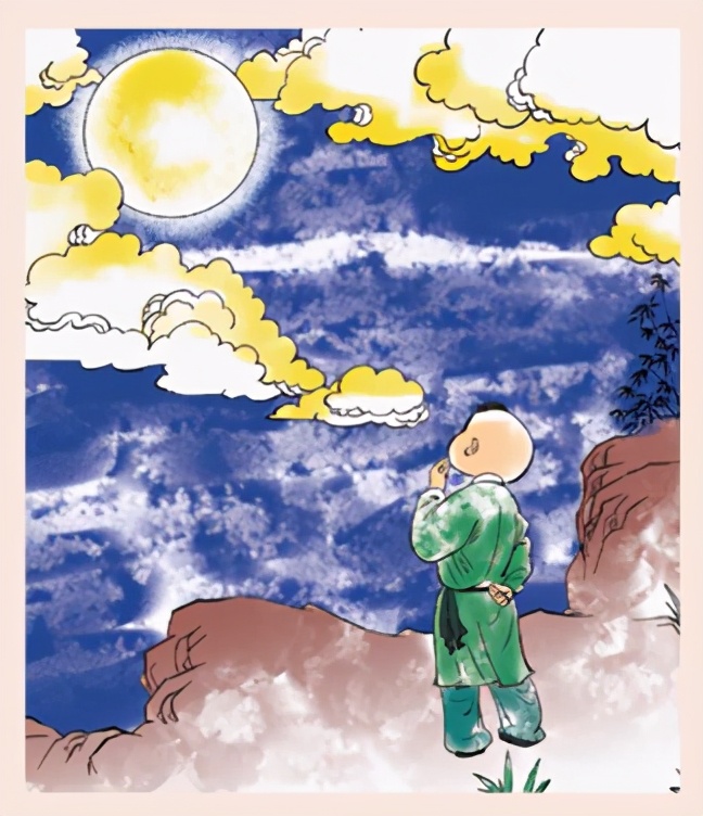 又猜想是天宫中的明镜,飞到青蓝色的云端。