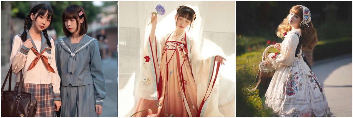 (从左至右:JK制服、汉服、lolita)