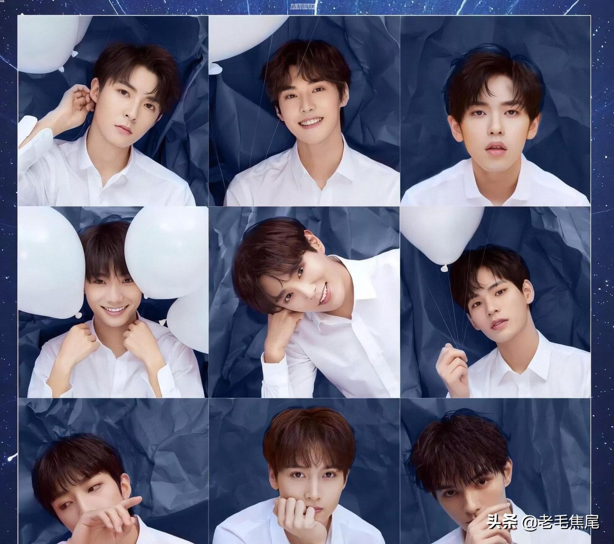 1:NINE PERCENT(百分九),2018年4月6号出道,成员有蔡徐坤,陈立农,范丞丞,黄明昊,林彦俊,朱正廷,王子异,小鬼,尤长靖。很多网友说百分九少年是内娱男团的天花板,历届选秀节目中大家最怀念的还是《偶像练习生》。